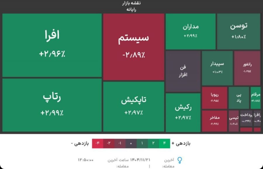 در گروه رایانه اکثر نمادها مثل تاپکیش، رتاپ و رافزا مثبت معامله شدند.