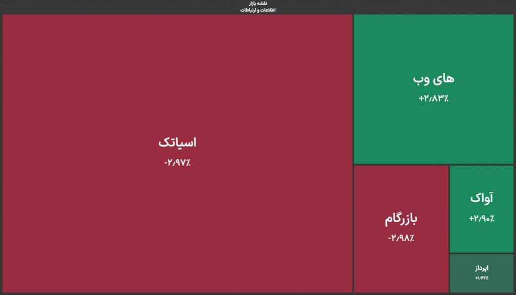 در صنعت اطلاعات و ارتباطات که شامل شرکتهای اینترنتی هم میشود، آسیاتک صف فروش بود، اما هایوب با صف خرید مواجه شده بود. انتظار میرود قطعی اینترنت اثر روی درآمد ماهانه این شرکتها بگذارد.
