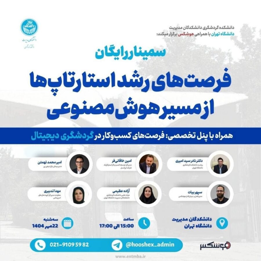 فعالان حوزه هوش مصنوعی و گردشگری، در سمینار «فرصت‌های رشد استارتاپ‌ها از مسیر هوش مصنوعی»، در مورد تحولی که هوش مصنوعی می‌تواند در این صنعت ایجاد کند، سخن گفتند.