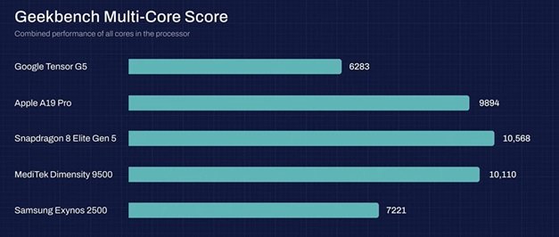 - تراشه های A19 Pro و Dimensity 9500: به ترتیب در جایگاه دوم و سوم قرار گرفتند.