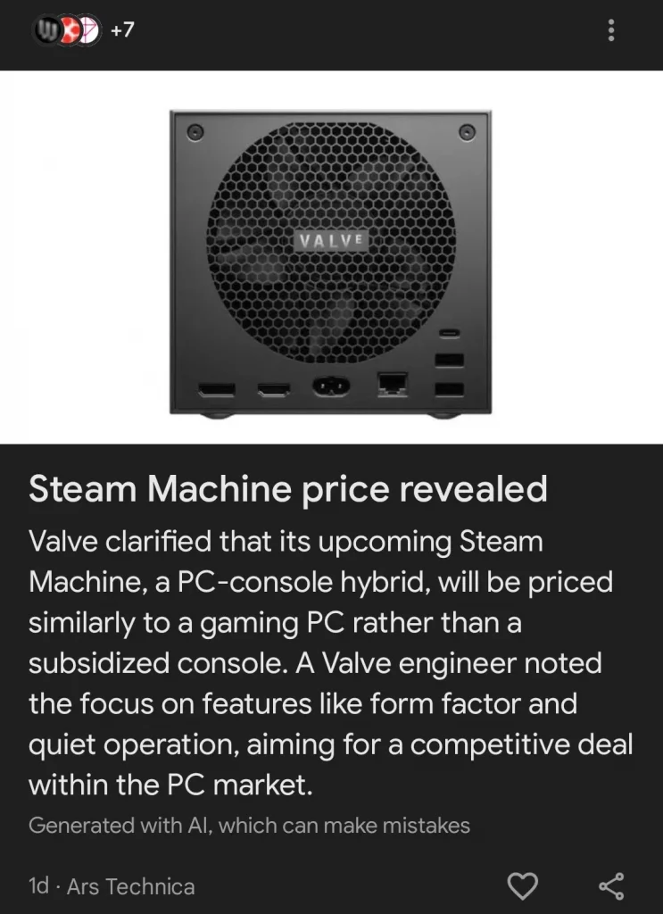 برای مثال، هوش مصنوعی گوگل تیتر اصلی یکی از گزارش‌های سایت Ars Technica با این مضمون که «استیم ماشین جدید Valve شبیه یک کنسول است، اما انتظار نداشته باشید قیمتش هم شبیه کنسول باشد» را اینطور بازنویسی کرده که «قیمت استیم ماشین برملا شد» این درحالی است که Valve قرار است قیمت این محصول را سال آینده میلادی اعلام کند.